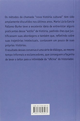 Os métodos da chamada “nova história cultural” têm sido amplamente discutidos nos últimos anos. Maria Lúcia Garcia Pallares-Burke teve a excelente ideia de entrevistar alguns praticantes desse “estilo” de história, pedindo-lhes que justificassem suas abordagens e também que, refletindo sobre suas trajetórias intelectuais, contassem um pouco de suas próprias histórias. O resultado dessas conversas é uma série de diálogos, ao mesmo tempo informais e esclarecedores, que conseguem a façanha de levar o leitor para a intimidade da “oficina” do historiador.