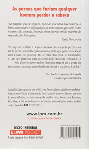 Na primeira edição de “As pernas de Úrsula”, a também escritora Cíntia Moscovich escreveu: Nas páginas que se seguem, mais do que uma boa história, o leitor encontrará a sofisticação de uma autora que sabe ir até o caroço do absurdo, fazendo desse secreto miolo matéria de riso e de alta literatura. Na novela As pernas de Úrsula e outras possibilidades, Claudia Tajes mantém o bom humor ao assumir um papel masculino. O narrador é casado com Alice, pai do Bebê L., que se vê exposto às tentações que a vida lhe impõe. E que, para completar, tem como melhor amigo um cara chamado Dylan: “Meu melhor amigo, Dylan, assim chamado pela devoção dos pais dele ao Bob de mesmo sobrenome…” “E enquanto o Bebê L. seguia urrando pela chupeta perdida, eu via as pernas da mulher passando tão perto que poderia alcançar com a mão, se quisesse. Ou se Alice não fosse se incomodar, o que me pareceu uma possibilidade bastante remota. (…) Não poderia haver melhor desculpa para ir até a porta do restaurante, dar mais uma olhada nas pernas e sua dona. E eu fui.” Trecho de As pernas de Úrsula e outras possibilidades