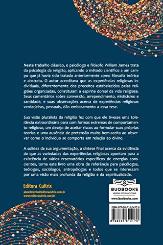 Neste livro clássico, e altamente influente, William James, médico, psicólogo e filósofo norte-americano, considerado o pai do pragmatismo, nos traz, nessa que é tida como uma das obras filosóficas mais lidas do mundo, uma visão revolucionária sobre a religião e seus princípios filosóficos e psicológicos, na qual ele considerada as religiões como uma vivência interna e transformadora, e não apenas como uma crença na experiência alheia. Seus comentários sobre conversão, arrependimento, misticismo e santidade, e suas observações acerca de experiências religiosas verdadeiras, pessoais, dão embasamento a essa tese. Numa abordagem original, James nos traz os conceitos básicos do que viria a ser nomeado como Psicologia Transpessoal, restituindo à Psicologia o seu objetivo verdadeiro e último: experienciar o Real em nossas vidas.