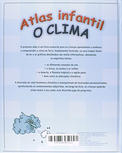 O presente atlas é um livro essencial para as crianças aprenderem a conhecer e compreender o clima da Terra. Amplamente ilustrado, os seus mapas fáceis de ler e os gráficos detalhados são muito informativos, abordando os seguintes temas: a chuva, os ventos e os tufões; o deserto, a floresta tropical e a região polar; as alterações climáticas.