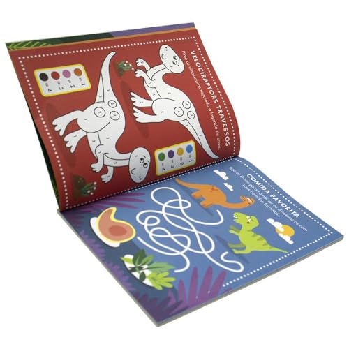 Divirta-se completando as atividades de Dinossauros neste livro encantador, com muitas páginas para colorir e adesivos fofos também!