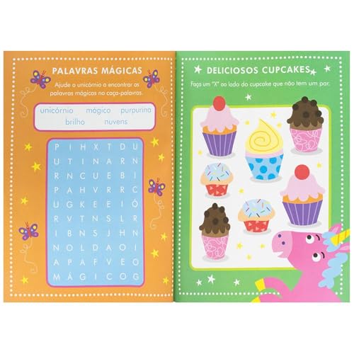 Divirta-se completando as atividades de Unicórnios neste livro encantador, com muitas páginas para colorir e adesivos fofos também!