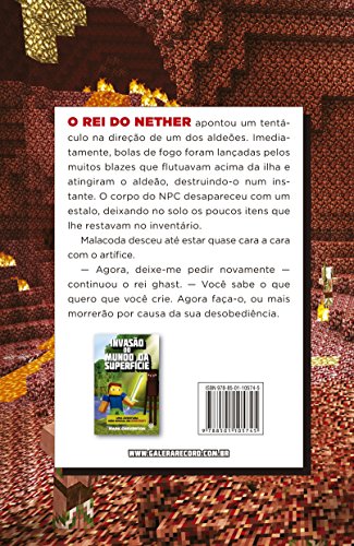 Continuação de Invasão do mundo da superfície Fenômeno mundial, com milhões de cópias vendidas, Minecraft — jogo tipo sandbox que permite a construção de um mundo próprio a partir de blocos — invadiu o universo dos livros, tomando de assalto a lista de mais vendidos de vários países, inclusive a do New York Times. Nesta segunda aventura da série, Gameknight999, o usuário que foi tragado para dentro de um servidor de Minecraft, só pensa em voltar para casa. Enfrentar hordas de zumbis sanguinários, aranhas gigantes e esqueletos arqueiros não foi fácil, mas nenhum dos perigos do Mundo da Superfície o preparou para o que está por vir: o Nether. A nova dimensão é governada por Malacoda, um ghast inescrupuloso que pretende destruir o mundo de Minecraft com seu exército de monstros infernais. Com a ajuda de seu inseparável amigo, Artíficie, Gameknight precisa recrutar um batalhão de NPCs capazes de impedir o rei do Nether de atingir a Fonte e exterminar todos os seres vivos de Minecraft e do mundo real.