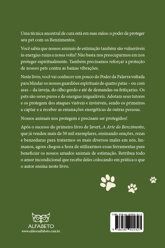 Após o sucesso do primeiro livro de Javert, A Arte do Benzimento, que já vendeu mais de 50 mil exemplares, ensinando orações, rezas e benzeduras para tratarmos os mais diversos males em nós, hu¬manos, agora chegou a hora de utilizarmos essas ferramentas para beneficiar os nossos amados animais de estimação. Retribua todo o amor incondicional que recebe deles colocando em prática o que o autor ensina neste livro.