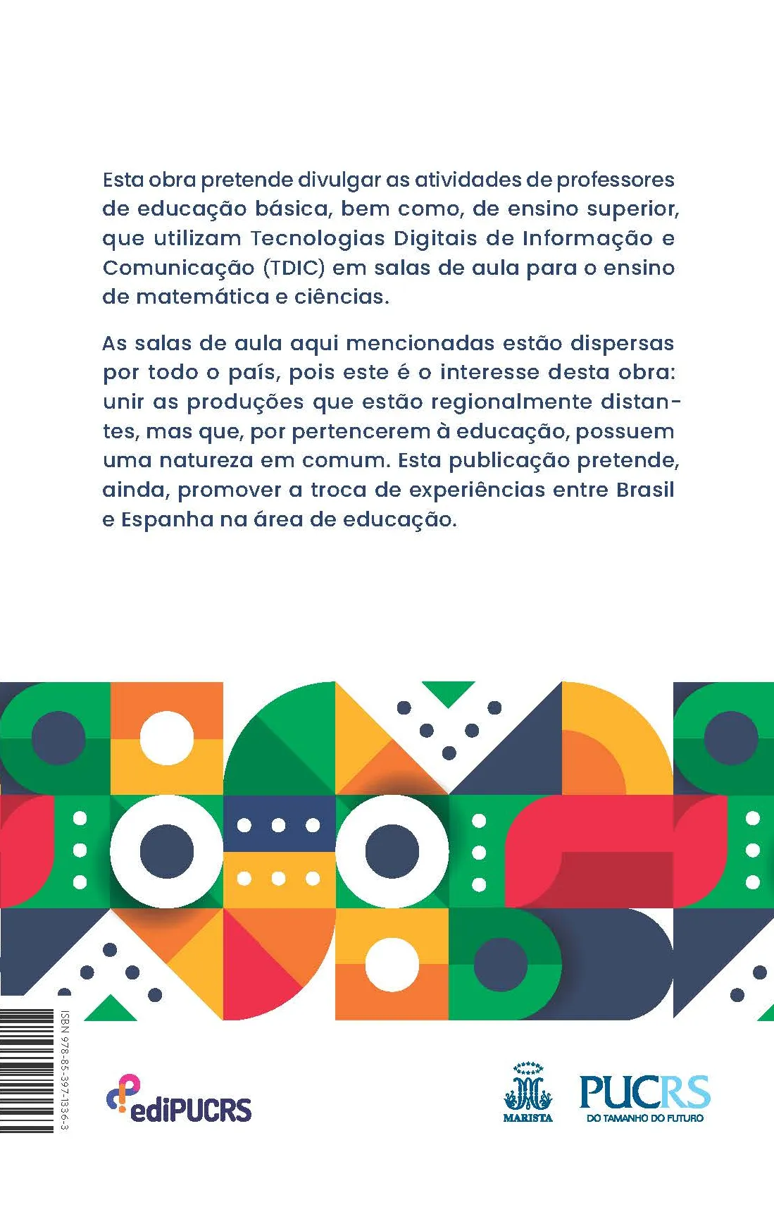Esta obra pretende divulgar as atividades de professores de educação básica, bem como, de ensino superior, que utilizam Tecnologias Digitais de Informação e Comunicação (TDIC) em salas de aula para o ensino de matemática e ciências. As salas de aula aqui mencionadas estão dispersas por todo o país, pois este é o interesse desta obra: unir as produções que estão regionalmente distantes, mas que, por pertencerem à educação, possuem uma natureza em comum. Esta publicação pretende, ainda, promover a troca de experiências entre Brasil e Espanha na área de educação.