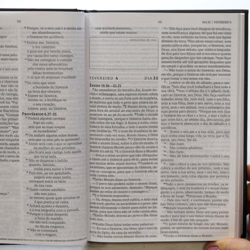 A Bíblia 365 foi especialmente desenvolvida para proporcionar uma experiência de leitura fluida e organizada, com passagens diárias distribuídas de maneira harmoniosa. Para cada dia, ela oferece trechos do Antigo Testamento, do Novo Testamento, dos Salmos e dos Provérbios, tornando o estudo mais dinâmico e enriquecedor. Com um design pensado para facilitar a navegação, a Bíblia permite que você comece a leitura em qualquer dia do ano, sem perder o ritmo. Além disso, suas orientações didáticas oferecem diversas formas de avanço, ajudando o leitor a encontrar um método que se ajuste às suas necessidades.Ideal tanto para estudo individual quanto para pequenos grupos ou leitura em comunidade, a distribuição equilibrada dos textos proporciona uma conexão profunda e singular com as Escrituras.Não é por acaso que a Bíblia 365 tem sido amplamente recomendada por quem já experimentou essa abordagem. Uma verdadeira oportunidade para explorar a riqueza da Bíblia Sagrada de maneira surpreendente!