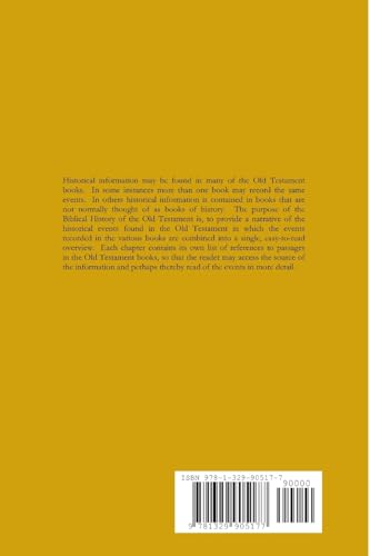 Historical information may be found in many of the Old Testament books. In some instances more than one book may record the same events. In others historical information is contained in books that are not normally thought of as books of history. The purpose of the Biblical History of the Old Testament is, to provide a narrative of the historical events found in the Old Testament in which the events recorded in the various books are combined into a single, easy-to-read overview. Each chapter contains its own list of references to passages in the Old Testament books, so that the reader may access the source of the information and perhaps thereby read of the events in more detail.