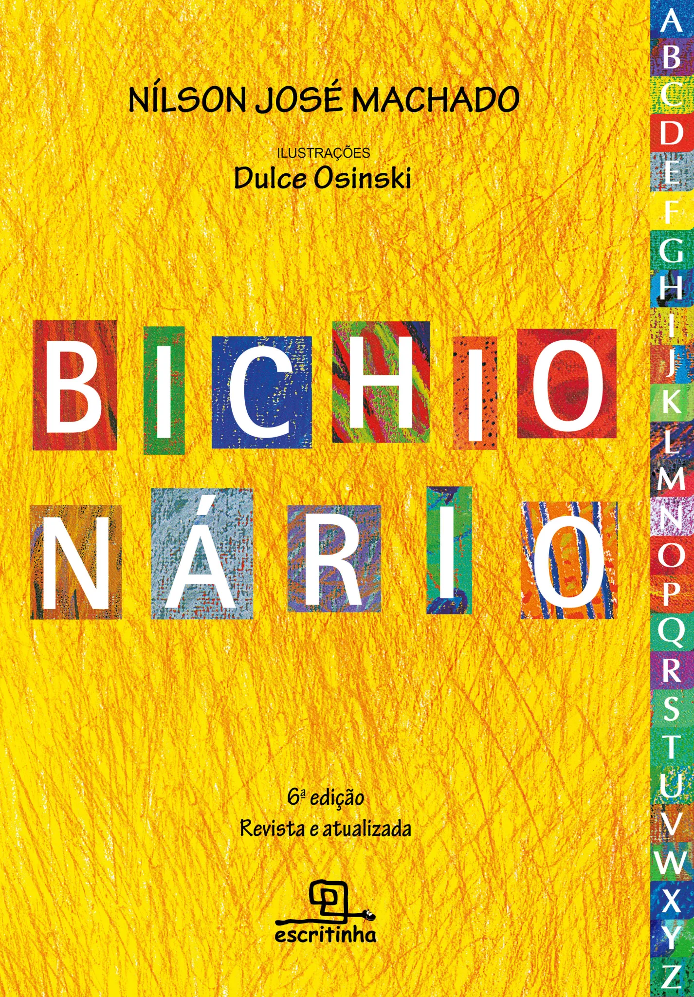 Elefante namorador, girafa que usa gravata, hipopótamo poeta e morcego de óculos escuros são alguns dos divertidos e estranhos animais que desfilam junto ao abecedário, nesta edição revista e atualizada com a inserção das letras K, W e Y. Bichionário é um convite para que leitores iniciantes explorem o alfabeto, a partir do jogo das palavras e da brincadeira com as rimas. Sobre o autor Nílson José Machado nasceu em Olinda/PE, mas vive em São Paulo/SP desde os 16 anos. Com vocação e alegria, é professor em tempo integral e escritor nas horas vagas. Lecionou Matemática em todos os níveis de ensino, inclusive no Instituto de Matemática e Estatística da Universidade de São Paulo (IME-USP), entre 1972 e 1981. Desde 1984, leciona na Faculdade de Educação da mesma universidade (FE-USP), em cursos de formação de professores. Escreveu vários livros, frutos de seu trabalho acadêmico, e alguns paradidáticos para crianças a partir de 5 anos. Sobre a ilustradora Dulce Osinski nasceu em Irati/PR em 1962, mas vive hoje em Curitiba. É artista plástica e ilustradora formada pela Escola de Música e Belas-Artes do Paraná, tendo estudado na Academia de Belas-Artes de Cracóvia, na Polônia. Doutora em Educação pela Universidade Federal do Paraná (UFPR), ilustrou diversos livros de literatura infantil e também expôs seus trabalhos em galerias e museus no Brasil e em outros países, destacando-se as mostras realizadas na Bolívia, Alemanha, Estados Unidos, Polônia, Japão, Portugal, Uruguai, Suécia, França e Eslovênia. Leia também Hipo pode nadar, texto e ilustrações de Pablo Bernasconi; O zoo de Joaquim, texto e ilustrações de Pablo Bernasconi; Tem planta que virou bicho! Volumes 1, 2 e 3, textos de Alda de Miranda, fotografias de Cacio Murilo; Haicontinhos de fadas, texto de Adson Vasconcelos, ilustrações de Gusta Vicentini.