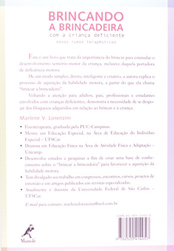 Este é um livro que trata da importância do brincar para estimular o desenvolvimento sensório-motor da criança, inclusive daquela portadora de deficiência motora. De um modo simples, direto, inteligente e criativo, a autora explica o processo de aquisição da habilidade motora, a partir do que ela chama Brincar a Brincadeira. Voltando a atenção para adultos, pais, profissionais e estudantes envolvidos com crianças deficientes, demonstra a necessidade de se despojar dos bloqueios adquiridos em relação ao brincar e à criança.