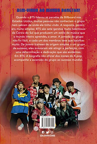 “Leitura obrigatória para fãs de K-POP! Saiba TUDO sobre o BTS, grupo que virou fenômeno mundial Por trás do visual impecável, dos fabulosos e perfeitamente coordenados passos de dança e dos hits de sucesso, se esconde a história de trabalho árduo de sete jovens obstinados que sonhavam com a fama. Hoje, o BTS é uma das principais expressões do K-pop, gênero musical que conquistou uma multidão de fãs no mundo inteiro. As trajetórias de Jin, Suga, J-Hope, RM, Jimin, V e Jungkook, desde a seleção como treinees, passando pelos anos de ensaio até a formação da banda e, finalmente, a fama, são narradas nesta biografia do grupo. Em BTS: A biografia não oficial dos ícones do K-pop, você vai conhecer todas as histórias dos bastidores do sucesso do grupo e também cada um dos seus desafios, além de acompanhar a busca incessante pela perfeição técnica e por uma postura inspiradora diante de sua geração, que são os diferenciais da banda. Mergulhe na trajetória do grupo mais influente de pop coreano e saiba tudo que um fã de K-POP precisa saber. “