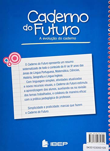 O Caderno do Futuro apresenta um resumo sistematizado de todo o conteúdo do 6º ao 9º anos das áreas de Língua Portuguesa, Matemática, Ciências, História, Geografia e Língua Inglesa.rnCom linguagem simples, atividades atualizadas e novos recursos visuais, o Caderno do Futuro estimula a aprendizagem dos alunos, auxiliando-os na revisão dos temas trabalhados, e colabora de maneira eficaz com a prática pedagógica do professor.rnSimplicidade e praticidade: marcas que fazem o Caderno do Futuro.