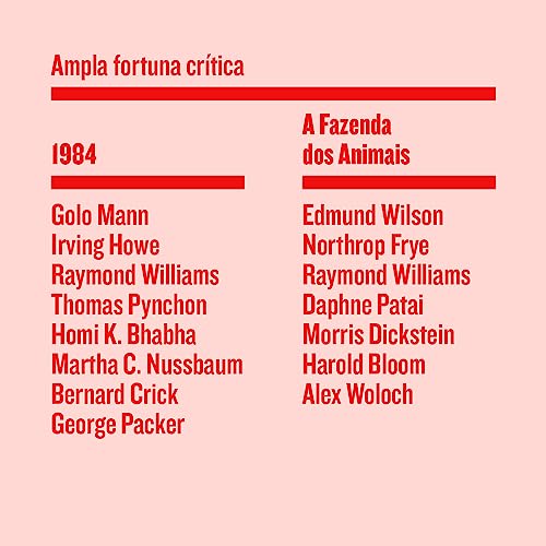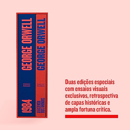 As duas obras-primas de um dos autores fundamentais do nosso tempo, em edições especiais com ensaios visuais exclusivos, retrospectiva de capas históricas e ampla fortuna crítica escrita por grandes nomes da teoria literária. 1984 e A Fazenda dos animais, dois dos romances mais emblemáticos do século XX, reunidos em um box especial. Para colecionadores. Em um projeto gráfico especialíssimo, com capa em tecido, corte impresso e ensaio visual das artistas brasileiras Regina Silveira e Vânia Mignone, as novas edições de 1984 e A Fazenda dos animais trazem apresentação do crítico Marcelo Pen e ensaios que dão conta da história da recepção crítica dos romances desde o seu lançamento. São textos inéditos no Brasil de autores como Golo Mann, Irving Howe, Raymond Williams, Thomas Pynchon, Homi K. Bhabha, Martha C. Nussbaum, Bernard Crick, Edmund Wilson, Harold Bloom, Daphne Patai, George Packer, entre outros, verdadeiros guias de leitura para mergulharmos no universo de Orwell. A Fazenda dos Animais conta também com nova tradução, feita por Paulo Henriques Britto, e um texto exclusivo relembrando a história das edições brasileiras do romance e abordando ligações entre política e literatura — e o que levou o livro a ter sido conhecido como A revolução dos bichos no país.