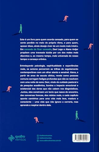 Entrelaçando psicologia, espiritualidade e experiências reais, os autores percorrem as trilhas do esgotamento contemporâneo com um olhar atento e sensível. Alana, a partir de anos de escuta clínica, revela como pessoas comuns carregam fadigas profundas que não se resolvem com uma noite de sono. Davi, vindo do cuidado pastoral e da pesquisa acadêmica, ilumina o impacto emocional e existencial das dores que não cabem nos diagnósticos. Juntos, eles constroem um texto que nasce do encontro, das conversas francas, dos relatos reais, e cada capítulo aponta caminhos para uma vida mais leve, madura e consciente — uma vida que não ignora a correria, mas aprende a respirar dentro dela.
