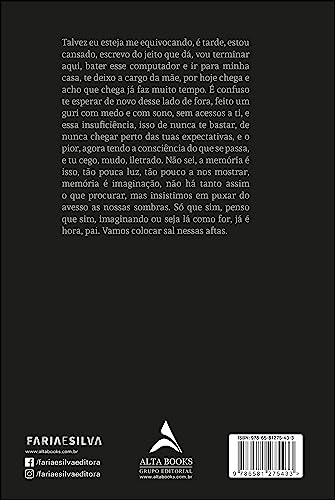 Talvez eu esteja me equivocando. É tarde, estou cansado, escrevo do jeito que dá, vou terminar aqui, bater esse computador e ir para minha casa, te deixo a cargo da mãe, por hoje chega e acho que chega já faz muito tempo. É confuso te esperar de novo desse lado de fora, feito um guri com medo e com sono, sem acessos a ti, e essa insuficiência, isso de nunca te bastar, de nunca chegar perto das tuas expectativas, e o pior, agora tendo a consciência do que se passa, e tu cego, mudo, iletrado. Não sei, a memória é isso, tão pouca luz, tão pouco a nos mostrar, memória é imaginação, não há tanto assim o que procurar, mas insistimos em puxar do avesso as nossas sombras. Só que sim, penso que sim, imaginando ou seja lá como for, já é hora, pai. Vamos colocar sal nessas aftas.