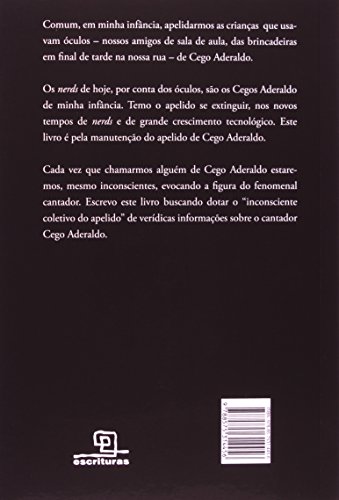 Numa época não muito distante, antes de se tornar comum o emprego do termo nerd, falava-se que fulano ou beltrano, por usar óculos, era um “Cego Aderaldo”. Mas onde estaria a origem de tal expressão? É, não só com o intuito de elucidar seu passado, que por ora é publicado este livro do selo Escrituras, cuja autoria é de Cláudio Portella, escritor, poeta, crítico literário e jornalista cultural.Na verdade, faz-se por bem mais que isso, numa homenagem ao grande Aderaldo Ferreira de Araújo, versador e cantador, figura fascinante de nosso cordel e, por extensão, de nossa cultura popular nacional. Aqui o leitor encontrará um pouco de sua história, marcada pela superação das limitações físicas, e sua obra de ricos achados orais, glosas e motes, desafios e quadrões, que foi objeto de estudo para grandes pesquisadores, caso de Luís da Câmara Cascudo, Edson Carneiro, Leonardo Mota, Alceu Maynar de Araújo, entre outros.Com o avançar das páginas, se poderá fazer um aprofundamento na trajetória de Cego Aderaldo, desde sua infância árida na cidade do Crato, Ceará, passando por episódios-chave, a exemplo de sua primeira peleja de versos; a que foi travada, posteriormente, com Zé Pretinho do Tucum; seu encontro com as ilustres figuras de padre Cícero, padre Antônio Vieira e Lampião; sua enriquecedora experiência no contato com tecnologias da época, como o gramofone e o projetor de cinema; os versos que compôs a fim de vender o licor depurativo de sangue Tayuyá, o sabão Aristolino, os xaropes Grindélia e Agriodol; tudo isso mergulhado num universo de violas e cantorias.Em definitivo, Cego Aderaldo é um exemplo de força de vontade, criatividade, inteligência e talento. Sua vida, muitas vezes, chega a se confundir com a mitologia popular. Tratava-se de alguém que não enxergava com os limitados olhos de carne, mas com os olhos do espírito, capazes de ir muito além do horizonte. E sua memória continuará entre nós até que as rimas deixem de existir; ou seja, para sempre! “Comum, em minha infância, apelidarmos as crianças que usavam óculos – nossos amigos de sala de aula, das brincadeiras em final de tarde na nossa rua – de Cego Aderaldo. Os nerds de hoje, por conta dos óculos, são os Cegos Aderaldo de minha infância. Temo o apelido se extinguir, nos novos tempos de nerds e de grande crescimento tecnológico. Este livro é pela manutenção do apelido de Cego Aderaldo. Cada vez que chamarmos alguém de Cego Aderaldo estaremos, mesmo inconscientes, evocando a figura do fenomenal cantador. Escrevo este livro buscando dotar o ‘inconsciente coletivo do apelido’ de verídicas informações sobre o cantador Cego Aderaldo.” Claudio Portella