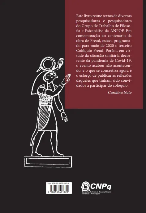 Sobre as organizadoras: Ana Carolina Soliva Soria é professora do Departamento de Filosofia da Universidade Federal de São Carlos (UFSCar) e autora de Do indivíduo à cultura: um estudo sobre Freud (Paco, 2011). Organizou, com o prof. Luiz Roberto Monzani, a coletânea Freud: Filosofia e psicanálise (EdUFSCar, 2019). Janaina Namba é professora do departamento de Filosofia DFil –UFSCar, membro do GT de Filosofia e Psicanálise da ANPOF, do conselho de resenhas da revista Percurso do Instituto Sedes Sapientiae, autora do livro Expressão e linguagem (Blucher, 2020) e de vários artigos na área de psicanálise.