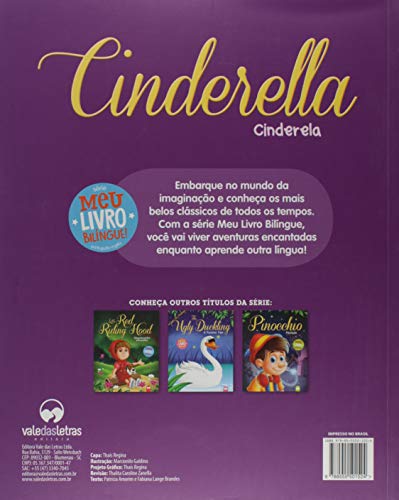 A Editora Vale das Letras traz para você uma forma fácil e divertida de incentivar suas crianças a praticar a língua inglesa! A série Meu Livro Bilíngue vai levar os pequenos em aventuras encantadas enquanto ensina outra língua! Perfeito para estimular o aprendizado de seus filhos e para desenvolver o vocabulário das crianças. Com esta série os pequenos irão embarcar no mundo da imaginação e conhecer os mais belos clássicos de todos os tempos, tudo isso enquanto eles praticam o inglês. Este livro traz a historia da Cinderela, ou no inglês, Cinderella.