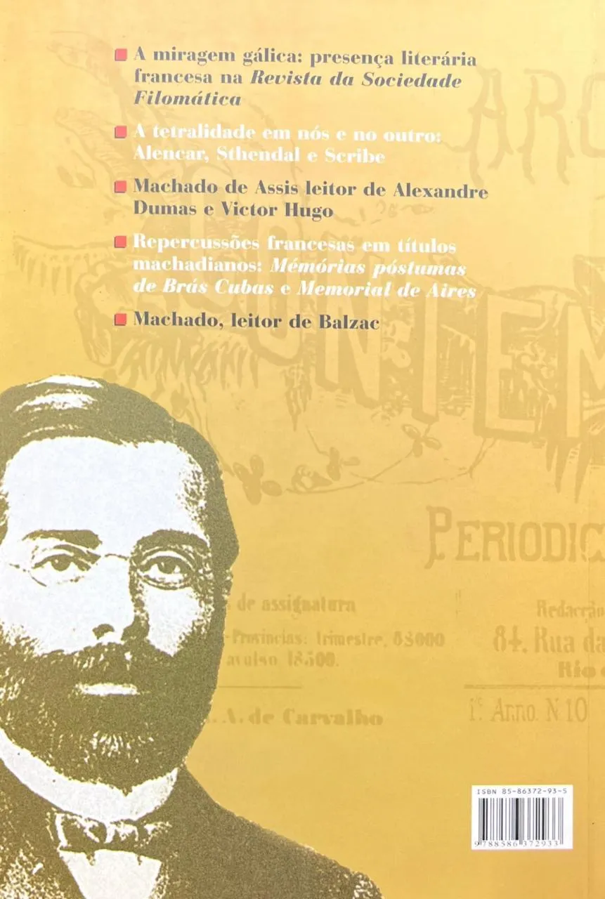 Os cinco ensaios reunidos neste volume integram a longa e produtiva história daquela pesquisa, em parte como assuntos colaterais, mas sempre como complementos inteligentes e enriquecedores. Assim, Machado de Assis retorna em três deles e José de Alencar também comparece. Porém, o mais longo dos ensaios deste livro é dedicado a revelar em detalhes a presença francesa na Revista da Sociedade Filomática. Essa revista, publicada entre julho e dezembro de 1833, teve seis números, sendo a voz pública mais conhecida e consistente daquela Sociedade. que “funcionou” na Faculdade de Direito de São Paulo, no largo de São Francisco. Contudo, só década de 1970 – cento e quarenta anos depois! – a revista foi exumada de um longo sono e mereceu o estudo posterior de Gilberto Pinheiros Pas-sos. que ora se publica.