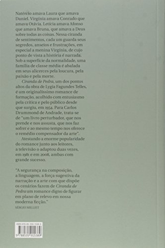 Quando um casal de classe média se separa, a caçula, Virgínia, é a única das três filhas que vai morar com a mãe. É do ponto de vista dessa menina deslocada e solitária que se narram os dramas ocultos sob a superfície polida da família. Loucura, traição e morte são as forças perversas que animam esse singular romance de formação, que já na época de seu lançamento, em 1954, chamou a atenção para o talento e a originalidade da literatura de Lygia Fagundes Telles. Saudado com entusiasmo por intelectuais como Antonio Candido, Paulo Rónai, Otto Maria Carpeaux e Carlos Drummond de Andrade, Ciranda de Pedra mantém-se há meio século como um dos livros mais amados da autora. Sua popularidade é tão grande que rendeu duas telenovelas da Rede Globo, uma em 1981 e a outra em 2008.