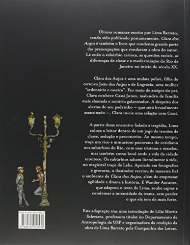 Último romance escrito por Lima Barreto, tendo sido publicado postumamente, Clara dos Anjos é também o livro que condensa grande parte das preocupações que rondaram a obra do autor. Lá estão o subúrbio carioca, as questões raciais, as diferenças de classe e a modernização do Rio de Janeiro no início do século XX. Clara dos Anjos é uma mulata pobre do subúrbio, filha do carteiro João dos Anjos e de Engrácia, uma mulher “sedentária e caseira”. Por meio de amigos do pai, Clara conhece Cassi Jones, malandro de família mais abastada e notório galanteador. A despeito dos alertas de seu padrinho – que será brutalmente assassinado -, Clara inicia uma relação com Cassi. A partir desse encontro fadado à tragédia, Lima coloca o leitor dentro de um jogo de tensões de classe, sedução e preconceito. Ao mesmo tempo, traça um rico e minucioso panorama do cotidiano nos subúrbios do Rio, com suas tristezas e mazelas, mas também como local onde a vida da cidade acontece. Nesta adaptação para os quadrinhos, os subúrbios saltam literalmente à vida, no magistral traço de Lelis. Apoiado em fotografias e gravuras, Lelis recriou de maneira fiel o ambiente de Clara dos Anjos, além de emprestar agilidade e drama à história. E Wander Antunes, que adaptou o texto de Lima Barreto, soube captar e condensar a intensidade da trama, sem perder o que ela tem de mais forte.
