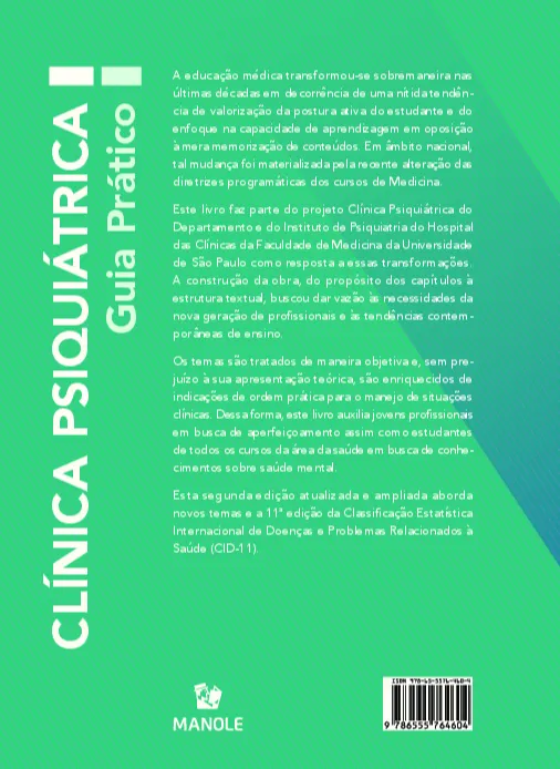 Este livro pode ser usado como apoio acadêmico a preceptores e professores do campo de saúde mental, seja na Medicina ou em outras formações. Esta nova edição foi atualizada e conta com novos capítulos, abordando temas como Covid-19, exames laboratoriais, marcadores genéticos, biomarcadores humorais, atendimento de populações minorizadas e psiquiatria do estilo de vida.