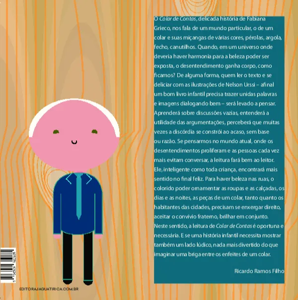 O ‘Colar de Contas’, delicada história de Fabiana Grieco, nos fala de um mundo particular, o de um colar e suas miçangas de várias cores, pérolas, argola, fecho, canutilhos. Quando, em um universo onde deveria haver harmonia para a beleza poder ser exposta, o desentendimento ganha corpo, como ficamos? De alguma forma, quem ler o texto e se deliciar com as ilustrações de Nelson Urssi – afinal um bom livro infantil precisa trazer unidas palavras e imagens dialogando bem – será levado a pensar. Aprenderá sobre discussões vazias, entenderá a utilidade das argumentações, perceberá que muitas vezes a discórdia se constrói ao acaso, sem base ou razão. Se pensarmos no mundo atual, onde os desentendimentos proliferam e as pessoas cada vez mais evitam conversar, a leitura fará bem ao leitor.