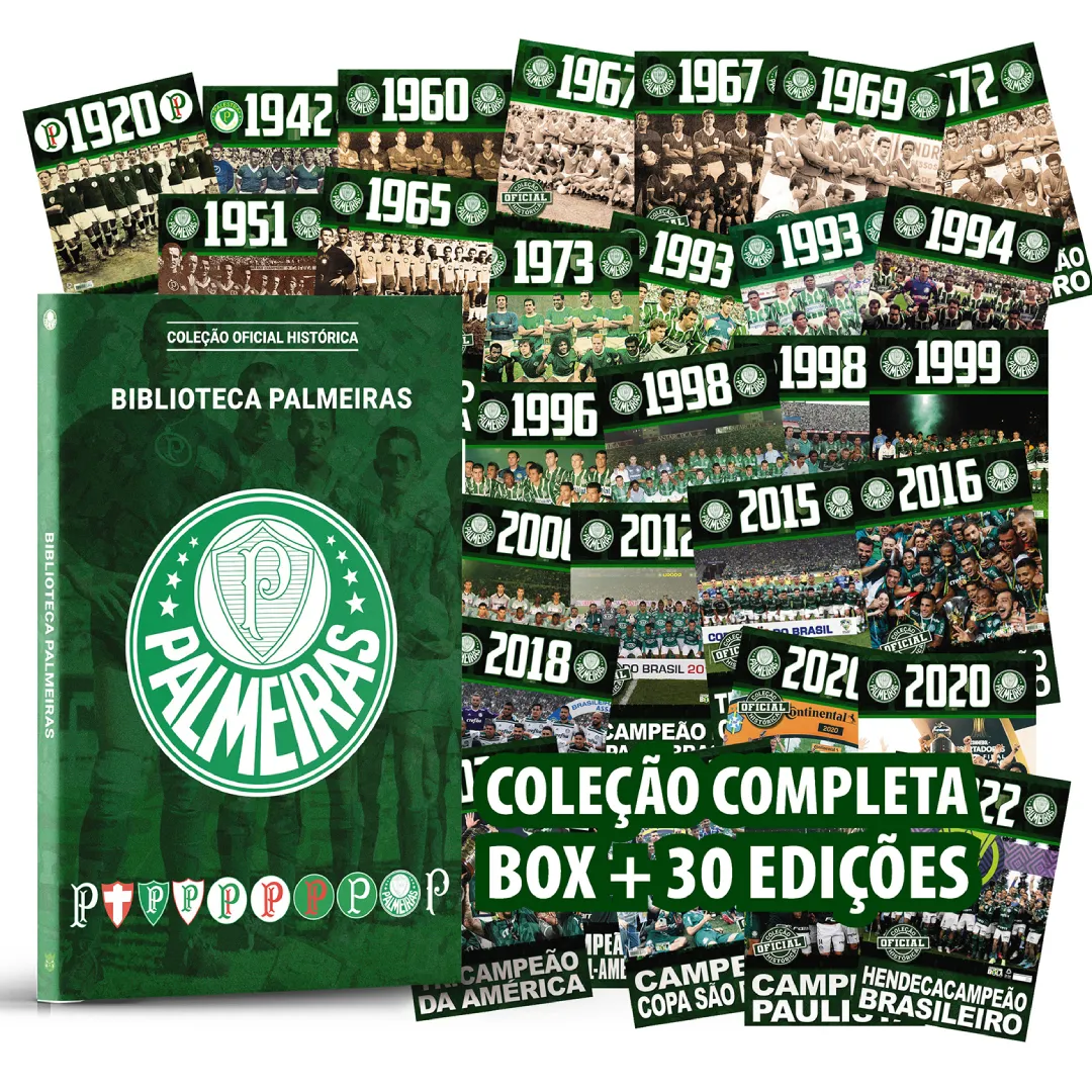 Celebre os 108 anos do maior campeão brasileiro com a Coleção Oficial Histórica do Palmeiras, criada em parceria pela Online Editora e Sociedade Esportiva Palmeiras Esta coletânea única apresenta 30 pôsteres vibrantes, representando os principais títulos conquistados pelo Verdão ao longo de sua história, cada um com informações detalhadas sobre os campeonatos, elencos, artilheiros, clubes participantes e fotos do time campeãoAinda acompanha um lindo box para você guardar para sempre Esta é a oportunidade perfeita para qualquer torcedor alviverde se conectar ainda mais com a história do seu time do coração Imagine a emoção de ter uma coleção de pôsteres exclusivos, cada um representando uma conquista histórica do PalmeirasOs pôsteres têm um tamanho aberto de 82,0 x 55,0 cm, perfeito para exibir com orgulho em sua casa ou escritórioNão perca esta chance de ter uma coleção histórica e apaixonante que certamente se tornará um tesouro para você e sua família