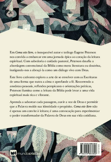 Em Coma este livro, o inesquecível autor e teólogo Eugene Peterson nos convida a embarcar em uma jornada épica ao coração da leitura espiritual. Com sabedoria e cuidado pastoral, Peterson desafia a abordagem convencional da Bíblia como mera literatura ou doutrina, instigando-nos a abraçá-la como um diálogo vivo com Deus. Este livro cativante explora a arte de se envolver com as Escrituras de uma forma que nutra a alma e aprofunde a fé. Recorrendo a anedotas pessoais, reflexões perspicazes e orientações práticas, Peterson ilumina como a leitura da Bíblia pode levar a uma vida espiritual mais rica e vibrante. Aprenda a saborear cada passagem, ouvir a voz de Deus e permitir que a Palavra molde sua identidade e propósito. Coma este livro não é apenas um convite à leitura; é uma convocação para experimentar o poder transformador da Palavra de Deus em sua vida cotidiana.