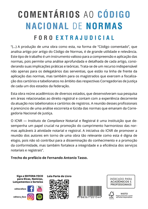 “(…) A obra aqui apresentada vem ao encontro desta praticidade almejada, visando e permitindo um acesso facilitado e descomplicado do quanto tratado pelo CNJ, com comentários de profissionais do mais alto gabarito, demonstrando os contornos e as nuances do quanto tratado pelas diretrizes do Código Nacional de Normas da Corregedoria Nacional de Justiça do Conselho Nacional de Justiça.