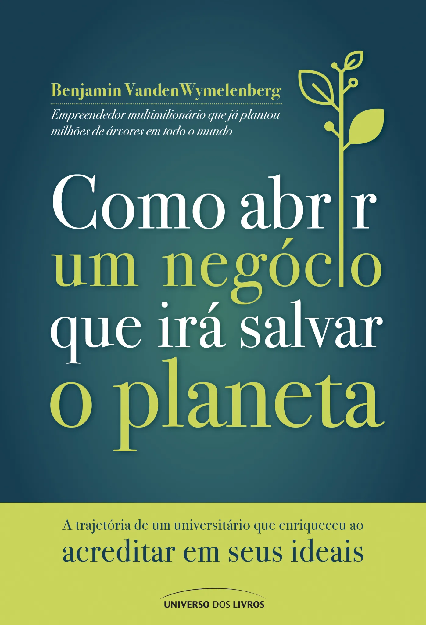 Todo mundo tem um espírito empreendedor dentro de si. Neste livro, aprenda a aperfeiçoar a sua motivação para fazer a diferença e liberte o empreendedor que existe dentro de você! Você tem uma ideia incrível que não consegue tirar da cabeça, só que sente receio de não ter a experiência, o conhecimento ou o capital necessários para colocá-la em prática? Para lhe ajudar a superar essa barreira, o multiempreendedor Ben VandenWymelenberg o orienta sobre como descobrir o que falta para você implementar de uma vez por todas as suas melhores ideias, ou seja, aquilo que o impulsiona a fazer a diferença para o futuro. Conheça os tipos de mentalidade capazes de quebrar barreiras, as principais características de um negócio ambientalmente responsável e entenda a importância de escolher de modo consciente o seu círculo social mais próximo a fim de impulsionar seus objetivos. Como abrir um negócio que irá salvar o planeta é uma obra que interessa tanto àqueles que estão começando um negócio, como também a quem deseja simplesmente inovar. Em busca de estimular autoconfiança a respeito dos talentos, inteligências e paixões de cada pessoa, Ben relata suas experiências e demonstra que a urgência dos problemas do mundo vai muito além dos limites de nossa zona de conforto. Sobre o autor: Benjamin VandenWymelenberg cresceu em uma pequena cidade rural no estado de Wisconsin, nos Estados Unidos, e posteriormente foi estudar Arquitetura e Paisagismo na Universidade de Minnesota. É palestrante, empresário na área de espaços de coworking e criador da marca Woodchuck USA, que promove a filosofia “BUY ONE. PLANT ONE” (“Compre um; plante uma”). Ben já plantou milhões de árvores em seis continentes, e com isso alcançou impactos ambientais positivos em todos os sete. Ciente de que não é possível mudar o mundo sozinho, ele iniciou um movimento para incentivar as pessoas a colocarem suas melhores ideias em prática, e este livro é parte desse projeto. Elogios e críticas “Ben e eu viajamos à Antártica, plantamos árvores na ponta mais ao sul do nosso planeta. Seu espírito e mente incrivelmente empreendedores criaram um projeto que ajudará a salvar nosso planeta.” Robert Swan, autor de Antarctica 2041: My Quest to Save the Earth’s Last Wilderness e detentor do recorde mundial de caminhada entre o Polo Sul e o Polo Norte “Ben é um mestre em criar negócios influentes que dão algo em retorno para nosso planeta.” Nanxi Liu, fundadora e CEO da Enplug e integrante da lista Forbes 30 Under 30 “Ben V. tem sido uma das luzes brilhantes do mundo porque ele nunca esconde suas ideias; em vez disso, as compartilha com o mundo. O planeta precisa exatamente de pessoas como ele. Como abrir um negócio que irá salvar o planeta é um plano de ação sobre como moldar e compartilhar suas ideias para que elas se tornem momentos de mudança na Terra.” Ken Rutkowski, fundador, presidente e apresentador da KenRadio Broadcasting, programa da emissora norte-americana CBS Leia também: A marca da vitória – para jovens empreendedores, Phil Knight Mentes milionárias, Dra. Teresa Aubele, Dr. Doug Freeman, Dra. Lee Hausner e Susan Reynolds