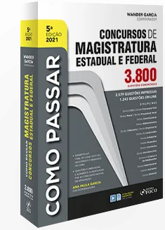 Aliás, você sabia que mais de 90% das questões de Concursos de MAGISTRATURA ESTADUAL E FEDERAL são resolvidas apenas com o conhecimento da lei, e que as questões das provas se repetem muito? Cada questão deste livro vem comentada com o dispositivo legal em que você encontrará a resposta. E isso é feito não só em relação à alternativa correta. Todas as alternativas são comentadas. Com isso você terá acesso aos principais dispositivos legais que aparecem nas provas e também às orientações doutrinárias e jurisprudenciais.