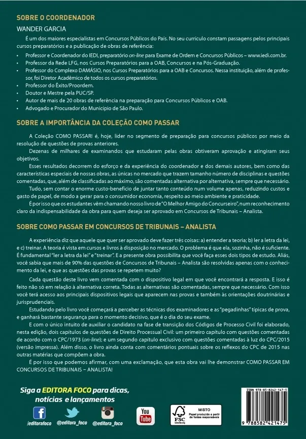 Estudando pelo livro você começará a perceber as técnicas dos examinadores e as “pegadinhas” típicas de prova, e ganhará bastante segurança para o momento decisivo, que é o dia do seu exame.