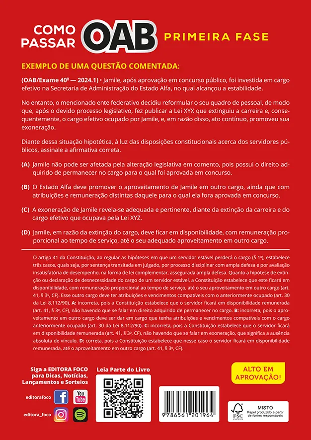 É importante ressaltar que essa obra é única no mercado, pois somente ela traz tamanho número de questões do Exame de Ordem e da FGV, questões estas que estão classificadas e comentadas, sendo que o comentário é feito para cada alternativa de cada questão, sempre que necessário.