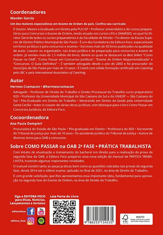 O manual contém tanto as peças práticas bem como as questões cobradas nas provas de segunda fase, desde 2014 até o último exame, aplicado no final de 2021, na área de Direito do Trabalho.