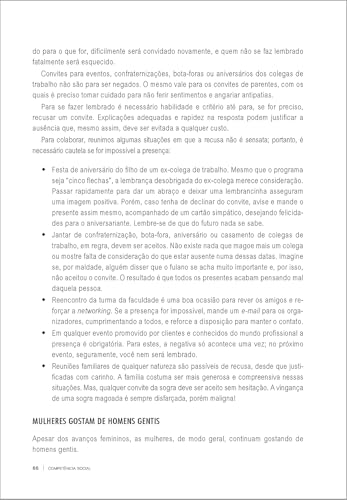 Com tiradas engraçadas e sugestões inteligentes, o livro Competência Social: mais que etiqueta uma questão de atitude não tem a pretensão de ser uma bula com regras rígidas sobre o assunto, mas um guia para ajudar o leitor a se sair bem em situações complicadas.