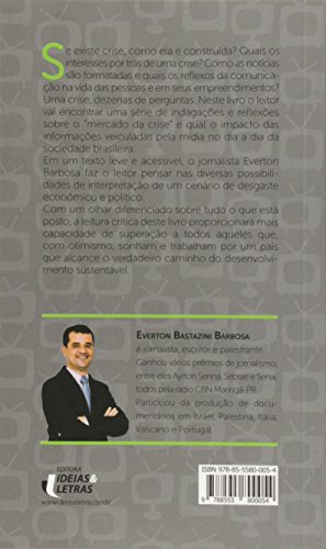 Se existe crise, como ela é construída? Quais os interesses por trás de uma crise? Como as notícias são formatadas e quais os reflexos da comunicação na vida das pessoas e em seus empreendimentos? Uma crise, dezenas de perguntas. Neste livro o leitor vai encontrar uma série de indagações e reflexões sobre o “mercado da crise” e qual o impacto das informações veiculadas pela mídia no dia a dia da sociedade brasileira. Em um texto leve e acessível, o jornalista Everton Barbosa faz o leitor pensar nas diversas possibilidades de interpretação de um cenário de desgaste econômico e político. Com um olhar diferenciado sobre tudo o que está posto, a leitura crítica deste livro proporcionará mais capacidade de superação a todos aqueles que, com otimismo, sonham e trabalham por um país que alcance o verdadeiro caminho do desenvolvimento sustentável.