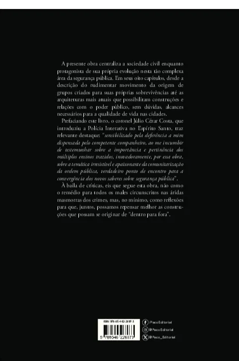 O livro revoluciona ao posicionar a sociedade civil como componente central da segurança pública. Da origem de grupos à interação com o poder, propõe-se a comunitarização da ordem e a formação de vínculos com agências para o controle comunitário da insegurança, alinhadas com propostas da ONU.