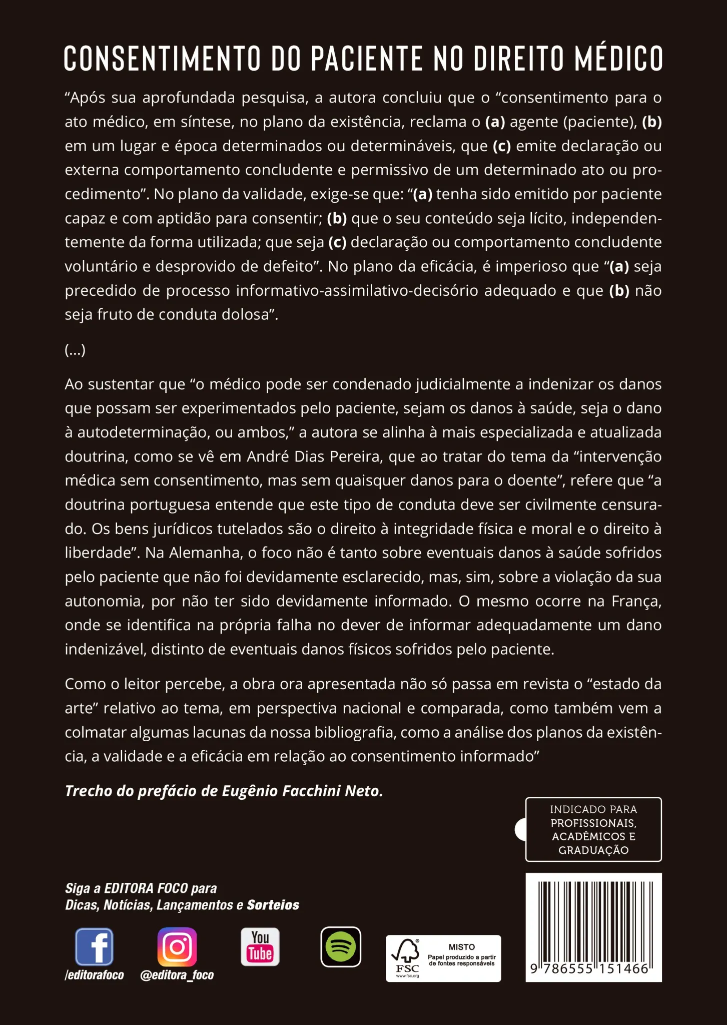 Como o leitor percebe, a obra ora apresentada não só passa em revista o “estado da arte” relativo ao tema, em perspectiva nacional e comparada, como também vem a colmatar algumas lacunas da nossa bibliografia, como a análise dos planos da existência, a validade e a eficácia em relação ao consentimento informado.