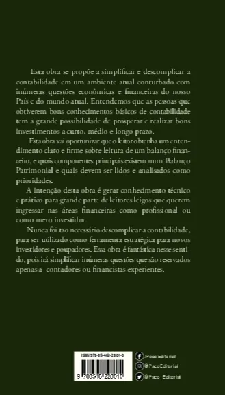 Esta obra se propõe a simplificar e descomplicar a contabilidade em um ambiente atual conturbado com inúmeras questões econômicas e financeiras do nosso País e do mundo atual. Entendemos que as pessoas que obtiverem bons conhecimentos básicos de contabilidade tem a grande possibilidade de prosperar e realizar bons investimentos a curto, médio e longo prazo.