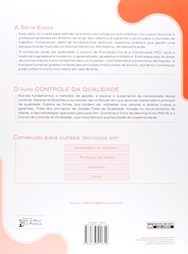 O gerenciamento da qualidade na indústria de confecção é o tema central deste livro, que aborda conceitos básicos e métodos de gestão, e explica o surgimento da necessidade desse controle. Apresenta filosofias e os setores da confecção em que deve ser implantado o princípio da qualidade. Analisa as fichas que podem ser utilizadas nos setores, os custos e as garantias. Trata dos conceitos básicos da Gestão Total da Qualidade, focada no encantamento do cliente, e as estratégias aplicadas para esse fim. Comenta o Ciclo de Deming (Ciclo PDCA) e o Círculo de Controle de Qualidade, sua importância e sua facilidade de implementação. O conteúdo pode ser aplicado para os cursos técnicos em Modelagem de Vestuário, Produção de Moda, Vestuário, Têxtil, entre outros. Possui material de apoio.