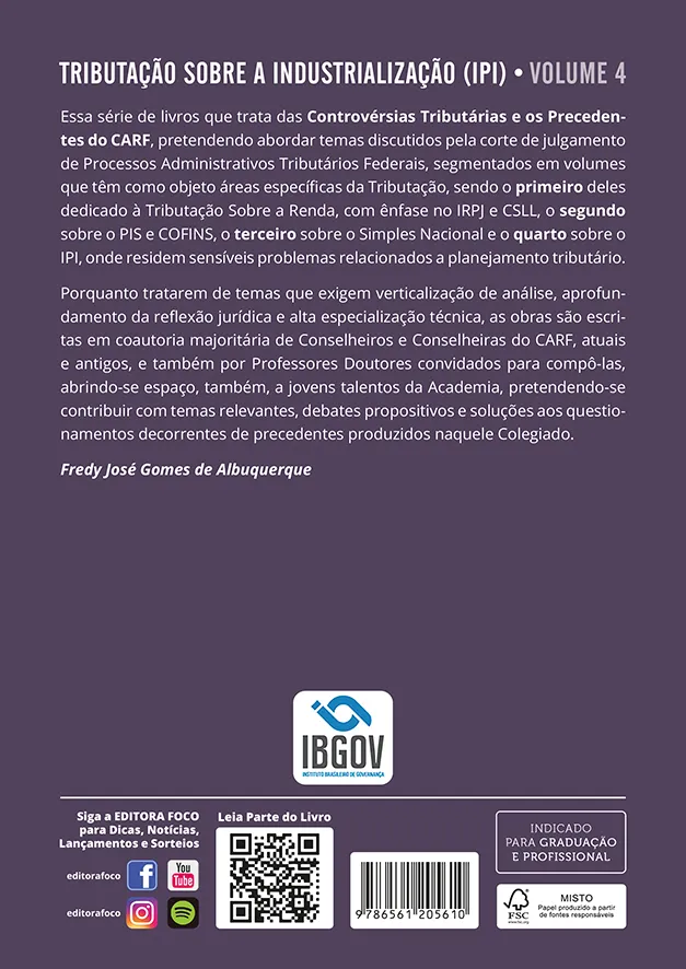 Sobre a obra Controvérsias Tributárias e os Precedentes do CARF – IPI Tributação sobre a Industrialização – 1ª Ed – 2025 – Volume 4