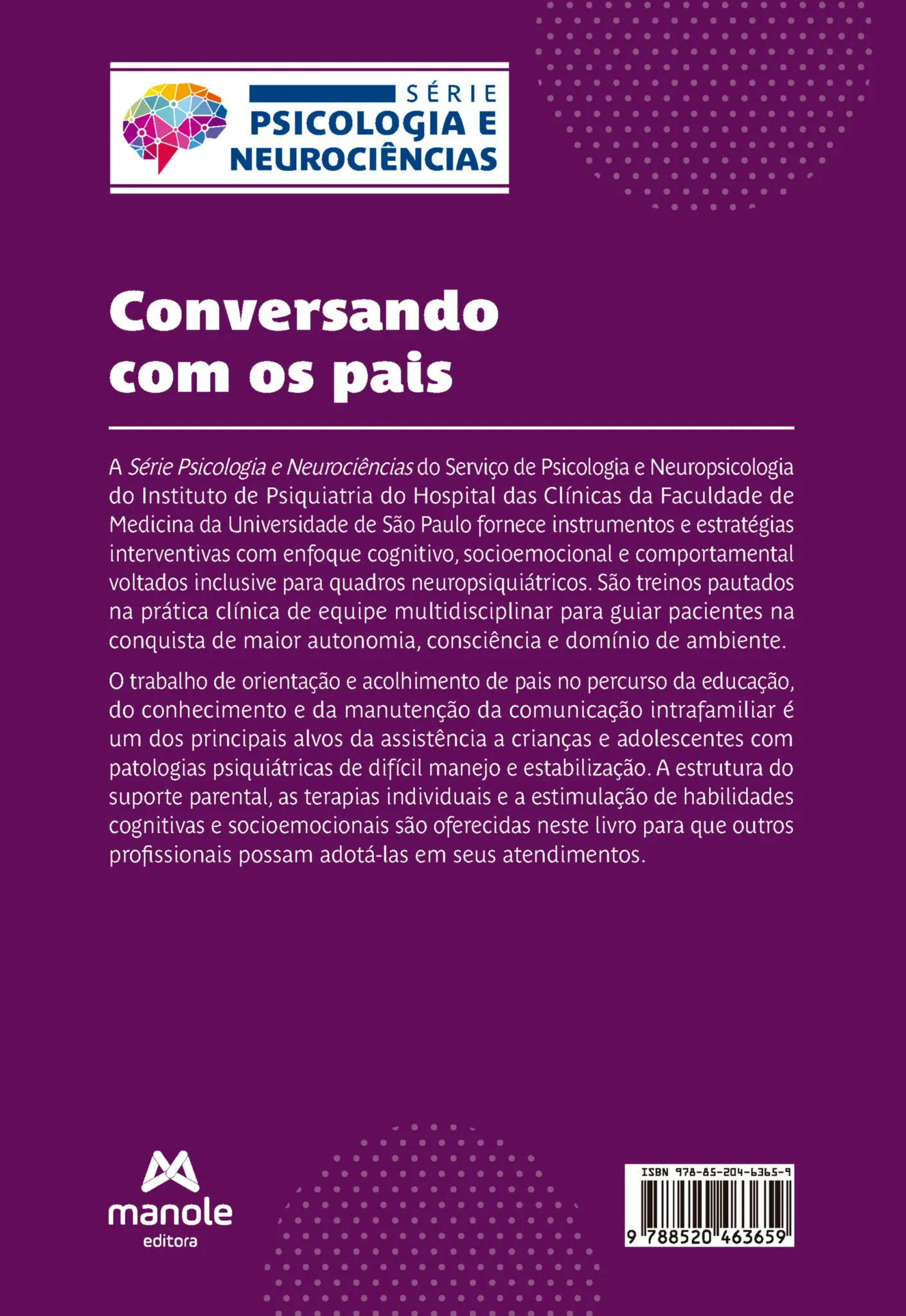 O trabalho de orientação e acolhimento de pais no percurso da educação, do conhecimento e da manutenção da comunicação intrafamiliar é um dos principais alvos da assistência a crianças e adolescentes com patologias psiquiátricas de difícil manejo e estabilização. A estrutura do suporte parental, as terapias individuais e a estimulação de habilidades cognitivas e socioemocionais são oferecidas neste livro para que outros profissionais possam adotá-las em seus atendimentos.