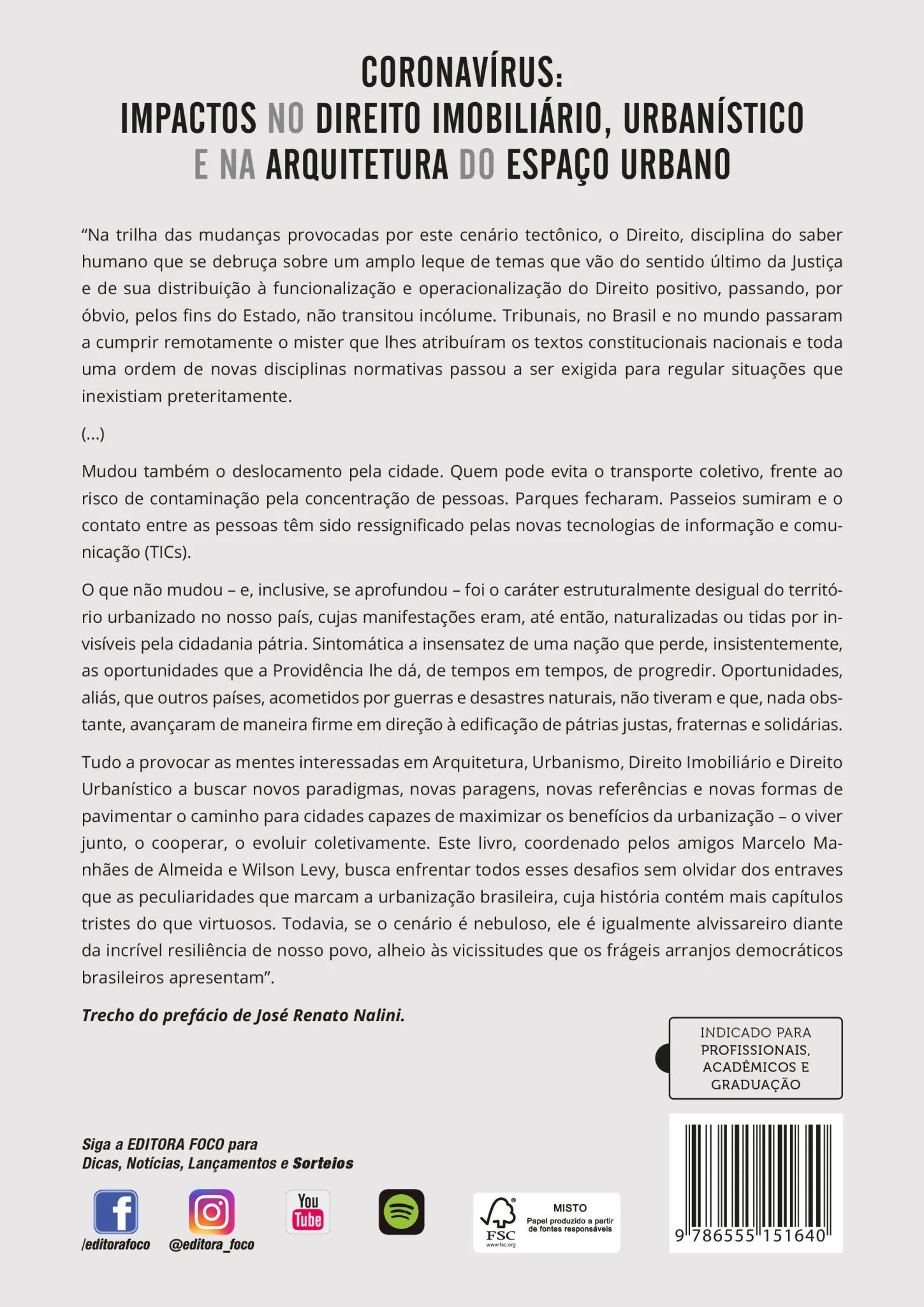 Tudo a provocar as mentes interessadas em Arquitetura, Urbanismo, Direito Imobiliário e Direito Urbanístico a buscar novos paradigmas, novas paragens, novas referências e novas formas de pavimentar o caminho para cidades capazes de maximizar os benefícios da urbanização – o viver junto, o cooperar, o evoluir coletivamente. Este livro, coordenado pelos amigos Marcelo Manhães de Almeida e Wilson Levy, busca enfrentar todos esses desafios sem olvidar dos entraves que as peculiaridades que marcam a urbanização brasileira, cuja história contém mais capítulos tristes do que virtuosos. Todavia, se o cenário é nebuloso, ele é igualmente alvissareiro diante da incrível resiliência de nosso povo, alheio às vicissitudes que os frágeis arranjos democráticos brasileiros apresentam.