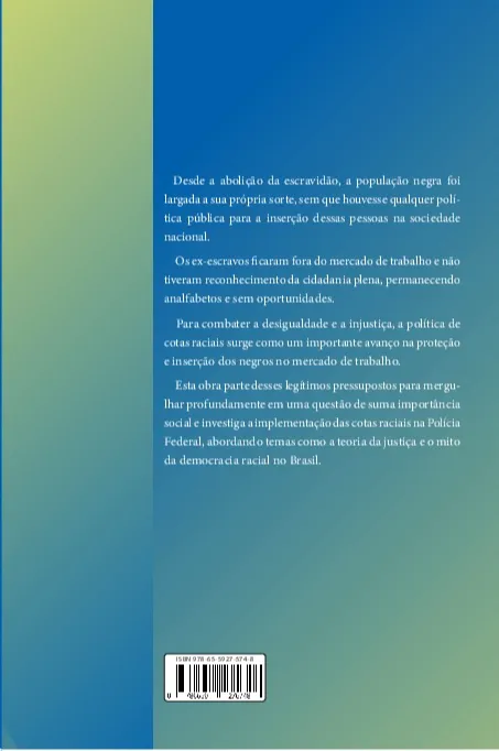 Esta obra parte desses legítimos pressupostos para mergulhar profundamente em uma questão de suma importância social e investiga a implementação das cotas raciais na Polícia Federal, abordando temas como a teoria da justiça e o mito da democracia racial no Brasil.