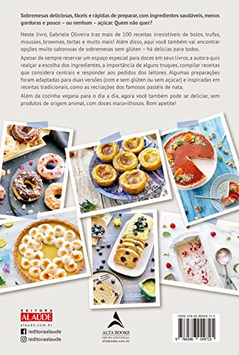 Apesar de sempre reservar um espaço especial para doces em seus livros, Gabriela Oliveira quis realçar a escolha dos ingredientes, a importância de alguns truques, compilar receitas que considera centrais e responder aos pedidos dos leitores. Uma parte das receitas apresentadas nesse livro estava dispersa em outros materiais. Algumas receitas foram adaptadas para duas versões (com e sem glúten ou sem açúcar) e cerca de 40 são novas, como as recriações dos famosos pastéis de nata. Neste livro, Gabriela Oliveira traz mais de 100 receitas irresistíveis de bolos, trufas, mousses, brownies, tortas e muito mais! Além disso, aqui você também vai encontrar opções muito saborosas de sobremesas sem glúten – há delícias para todos. Além da cozinha vegana para o dia a dia, agora você também pode se deliciar, sem produtos de origem animal, com doces maravilhosos. Bom apetite! Neste livro, Gabriela Oliveira traz mais de 100 receitas irresistíveis de bolos, trufas, mousses, brownies, tortas e muito mais! Além disso, aqui você também vai encontrar opções muito saborosas de sobremesas sem glúten – há delícias para todos. Além da cozinha vegana para o dia a dia, agora você também pode se deliciar, sem produtos de origem animal, com doces maravilhosos. Bom apetite!