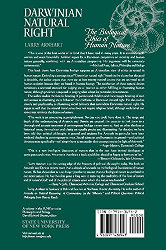 This book shows how Darwinian biology supports an Aristotelian view of ethics as rooted in human nature. Defending a conception of “Darwinian natural right” based on the claim that the good is the desirable, the author argues that there are at least twenty natural desires that are universal to all human societies because they are based in human biology. The satisfaction of these natural desires constitutes a universal standard for judging social practice as either fulfilling or frustrating human nature, although prudence is required in judging what is best for particular circumstances.