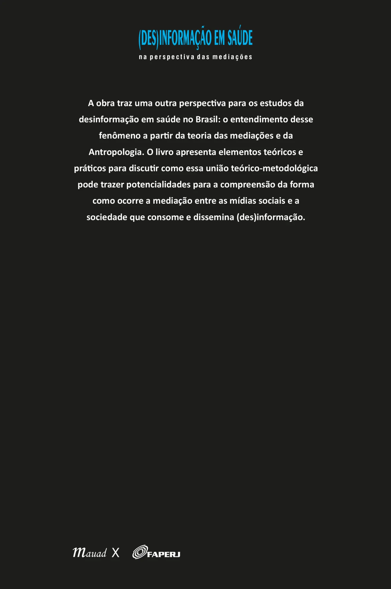 Este livro oferece um outro olhar para os estudos da desinformação em saúde: o entendimento do fenômeno a partir da perspectiva das mediações. A nossa proposta vai na contramão dos estudos sobre desinformação realizados no Brasil, que centralizam suas análises na produção textual, para focar nas práticas sociais mediadas que dissolvem as interpretações baseadas nas respostas das audiências, entendendo a mídia como uma parte complexa do tecido da cultura. Em seis capítulos, a obra apresenta uma inovadora abordagem teórico-metodológica, que entrelaça a teoria das mediações com a perspectiva antropológica, e demonstra, na prática, sua potencialidade para a compreensão da forma como ocorre a mediação entre as mídias sociais e a sociedade que consome e dissemina (des)informação.