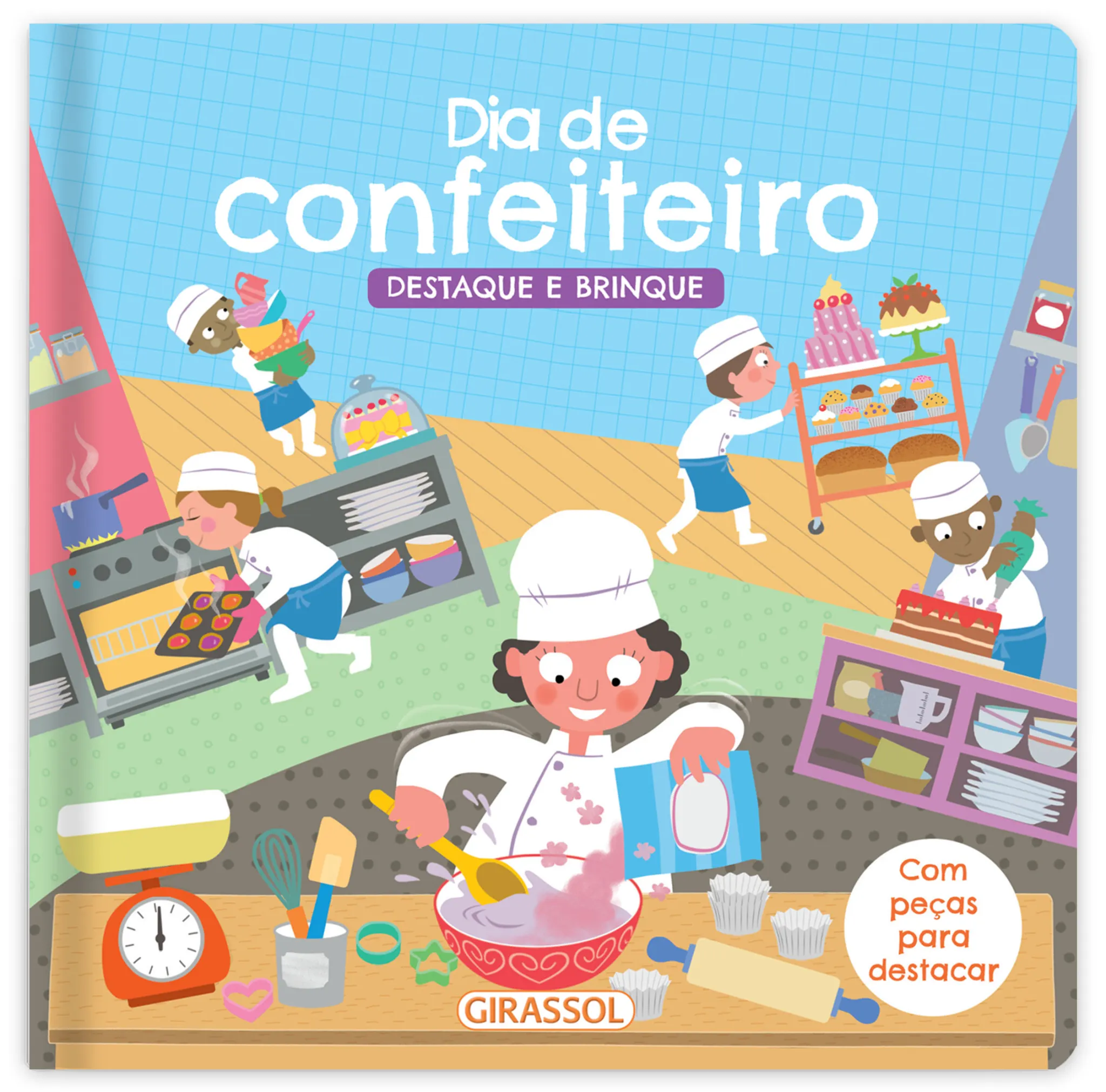 Leia a história e divirta-se destacando as peças para ajudar os confeiteiros a fazer os cupcakes. Com este livro, os pequenos podem ser confeiteiros por um dia! Pontos de interesse: As peças oferecem uma experiência interativa ao leitor;Texto em letra bastão; Com cantos arredondados e formato perfeito para a mãozinha dos pequenos; Trabalha a associação de texto com imagem, ensinando palavras novas; Estimula a imaginação ao abordar uma profissão.
