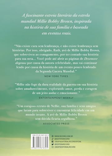 Na fascinante estreia literária da atriz Millie Bobby Brown, Dezenove degraus conta uma história épica sobre desejos, perdas e segredos inspirada na família da autora e baseada em eventos reais ocorridos na Segunda Guerra Mundial. Londres, 1942. Enquanto os conflitos da Segunda Guerra Mundial seguem a todo vapor na Europa continental, a capital inglesa vive sob a constante ameaça de bombardeios aéreos da Alemanha nazista. Ainda assim, na região de Bethnal Green, toda vez que sai ilesa do abrigo subterrâneo junto de toda sua amada família, Nellie Morris se considera uma garota de sorte. Após três anos de guerra, a jovem de 18 anos se sente grata por manter certos aspectos de normalidade em sua rotina: a família, o emprego como assistente da prefeita e as noites no pub com seus melhores amigos. Porém, ela quer muito mais que viver num distritozinho londrino. E é por isso que, depois de esbarrar por acaso em Ray, um aviador norte-americano alocado na base de uma cidade próxima, seu desejo de conhecer o mundo cresce ainda mais. Mas, assim que Nellie começa a experimentar uma vida nova e empolgante ao lado de Ray, um terrível acidente ocorre numa noite durante um ataque aéreo, e as consequências são catastróficas. No entanto, quando parece não haver mais esperança, ela descobre que, contra todas as probabilidades, o amor e a felicidade podem triunfar. Dezenove degraus é um livro emocionante e encantador inspirado na família da autora. Nesta história épica sobre desejos, perdas e segredos, a estreia literária de Millie Bobby Brown nos apresenta uma jovem inesquecível e corajosa que retrata com ousadia a força do amor. “Não existe cura sem lembrança, e não existe lembrança sem histórias. Por isso, obrigado, Ruth, avó de Millie Bobby Brown, que sobreviveu ao esmagamento, por ter contado sua história para sua neta… Você pode até abrir as páginas de Dezenove degraus por causa da autora celebridade, mas vai continuar lendo por causa da história de um evento pouco lembrado da Segunda Guerra Mundial.” — The New York Times “Millie não foge da dura realidade da guerra em sua história sobre amadurecimento, explorando amor, perda e coragem de um jeito audaz e emocionante.” — Entertainment Weekly “Um corajoso retrato de Nellie, sua família e seus amigos que lutam para sobreviver e encontrar felicidade em um mundo insano. A avó de Millie Bobby Brown sem dúvida ficaria orgulhosa.” — Associated Press