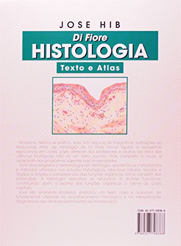 Moderno, teórico e prático, este livro associa às magníficas ilustrações do tradicional Atlas de Histologia de Di Fiore novas figuras e esquemas explicativos em cores, para oferecer aos professores e alunos da área das ciências biológicas não só um texto sucinto, mas completo e visual, e adaptado aos programas vigentes nas universidades. Esta obra engloba a terminologia em Histologia, apresenta os instrumentos e métodos utilizados nos estudos histológicos, descreve células, tecidos e órgãos, e amplia a compreensão das funções orgânicas como também das patologias. A histologia descritiva se relaciona à análise funcional, constituindo assim o exame das funções orgânicas o cerne de cada capítulo.